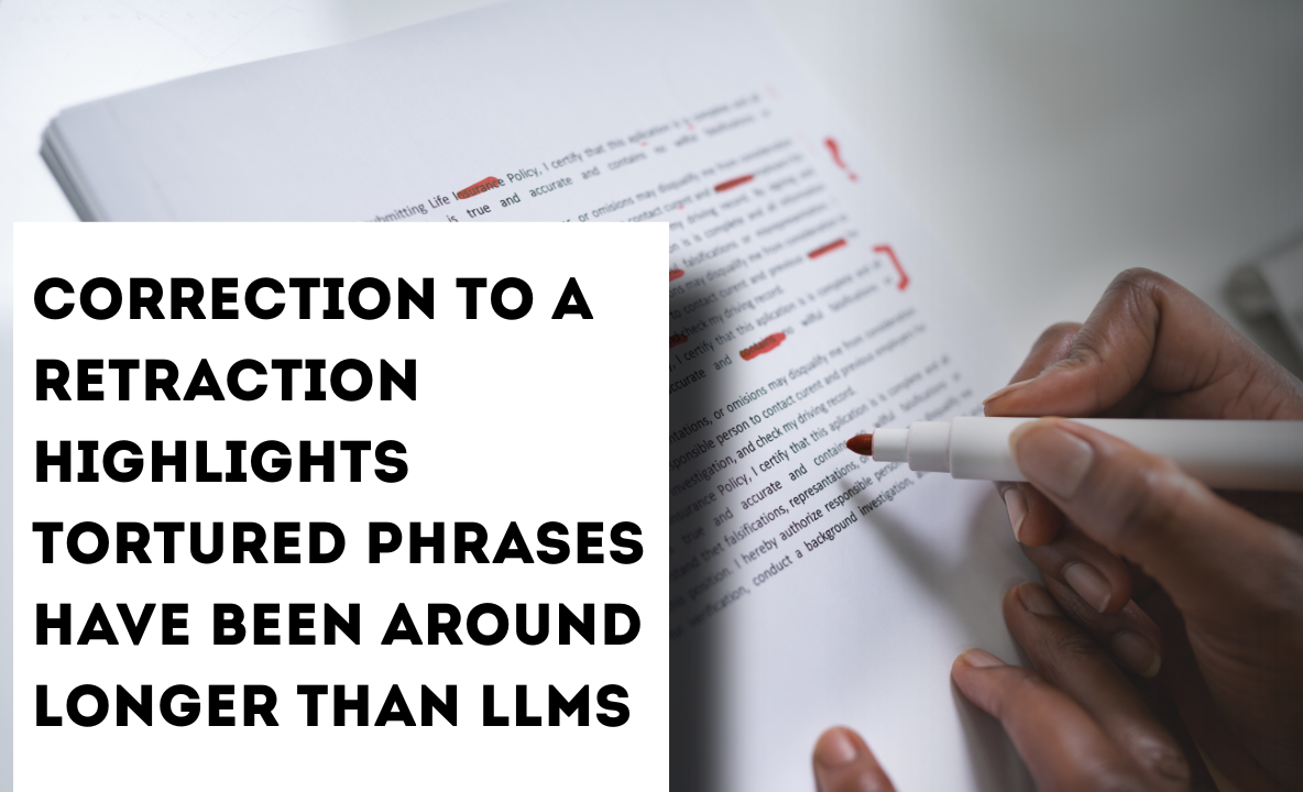 Correction to a retraction highlights tortured phrases have been around longer than LLMs
