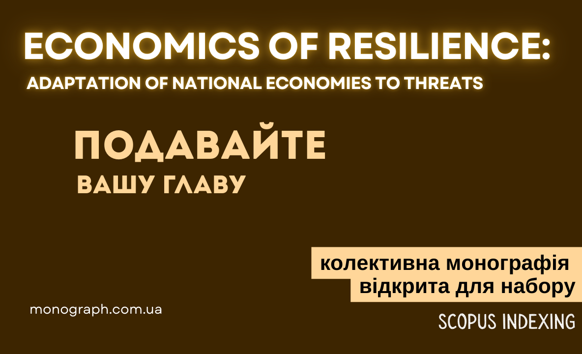 РОЗПОЧАТО ФОРМУВАННЯ колективної монографії "ECONOMICS OF RESILIENCE: ADAPTATION OF NATIONAL ECONOMIES TO THREATS"